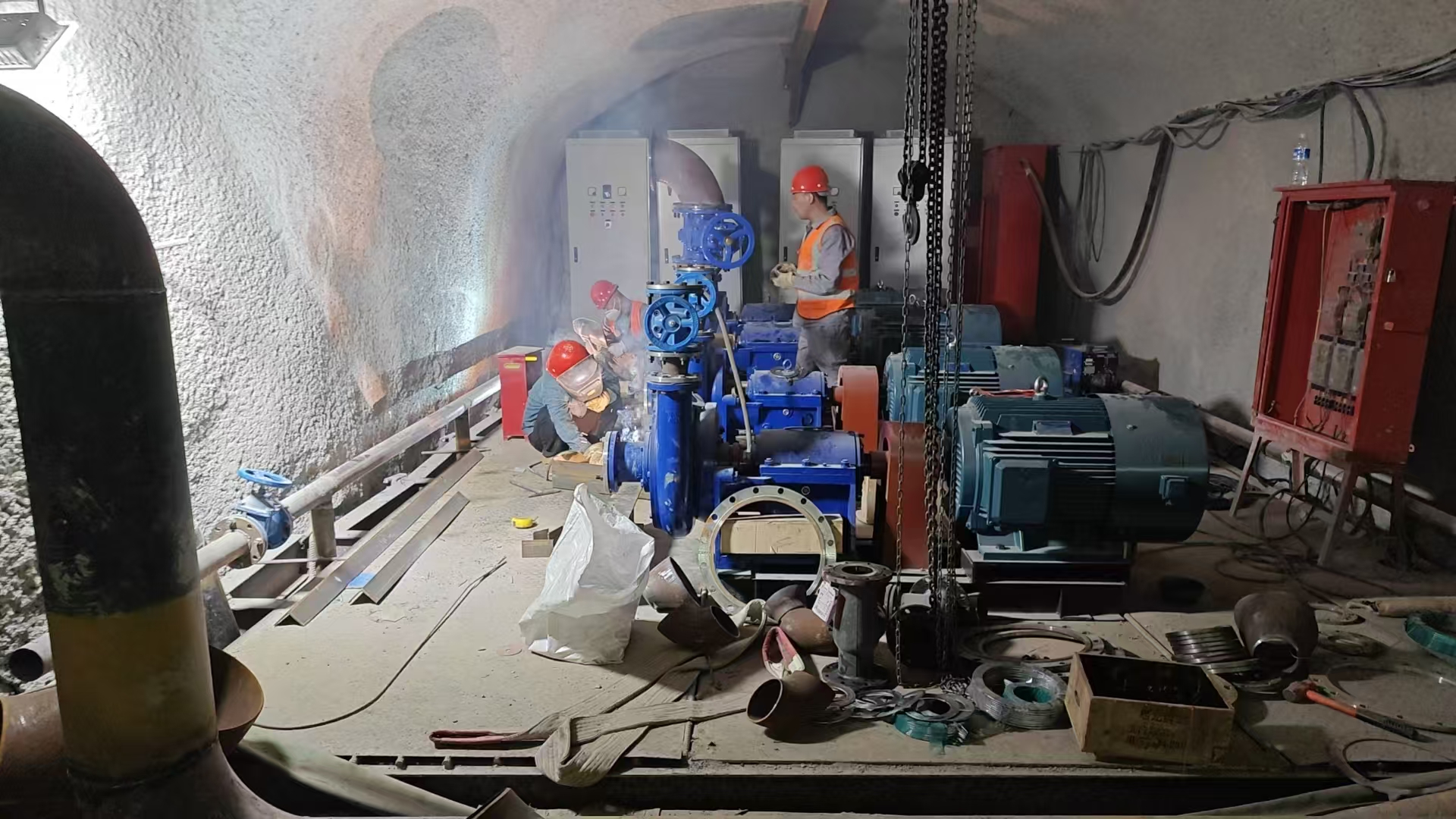 湖北鐵路隧道第三批主排水泵開(kāi)始緊張安裝工作
